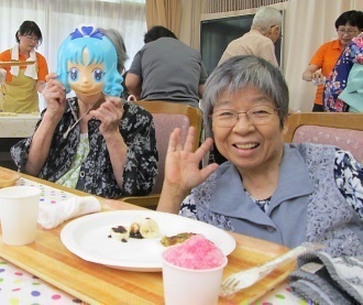 ヨーヨー釣りやカギ氷をご家族と一緒に楽しみました。夜は「大花火大会」童心に返って楽しみました!
