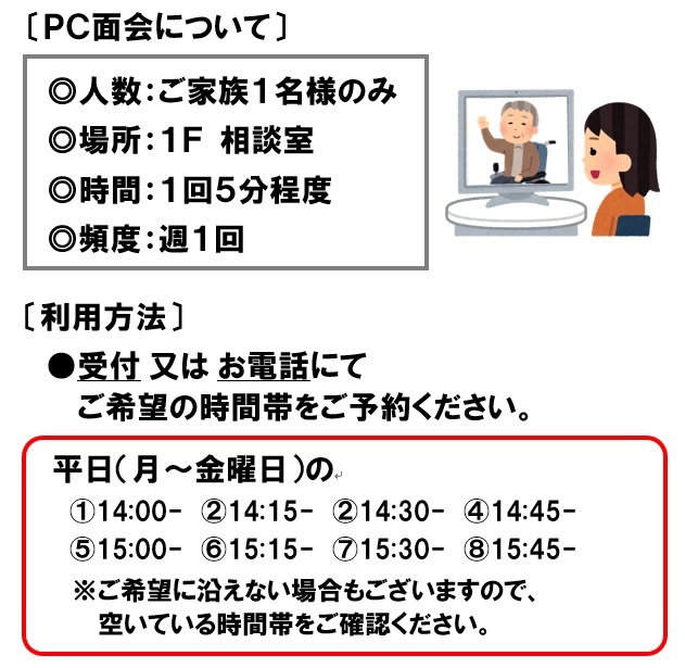 ご家族様が利用者様とPCを通して面会できる環境を整えました。
