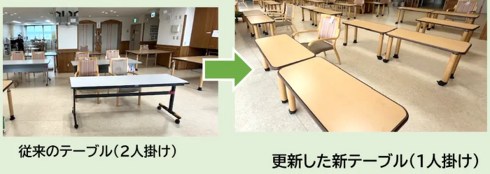 3月末に入所の皆さまが利用される「介護テーブル」を一斉更新しました。